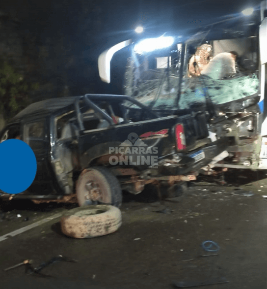 [VÍDEO] Caminhonete com placas de Balneário Piçarras se envolve em colisão com ônibus na BR-470; homem e mulher morreram