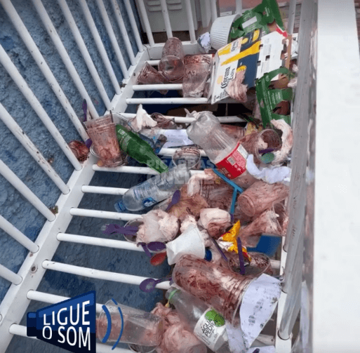 “Essa é a situação que alguns catadores de lixo passam e deixam o lixeiro. Toda noite a gente vai, recolhe tudo no lixinho e guarda. Foi feito tudo isso ontem à noite. Alguns sem-vergonha, desalmados, que não mereciam estar na Terra. Olha a situação que eles deixam. Mas, infelizmente, é isso que a gente tem. A gente é bom, a gente faz do jeito certo, mas sempre tem um peste para pesar no mundo. Isso dá revolta na gente. Olha a situação. Isso não deve acontecer só comigo, isso deve acontecer com todo mundo. Que situação”, desabafou o denunciante enquanto registrava o lixo espalhado pelo local.
