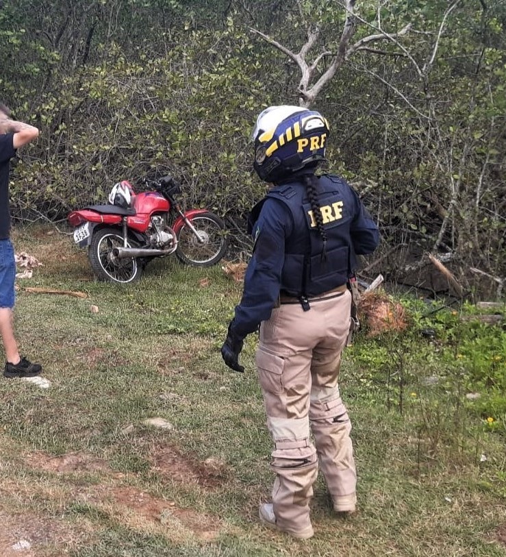 Policiais rodoviários federais flagraram na BR-101, em Balneário Piçarras, uma motocicleta transitando com a placa falsa, pertencente a outra moto. O condutor não obedeceu ordem de parada, saiu da rodovia e tentou se esconder em um bairro, mas foi localizado escondido na vegetação. O jovem, de 21 anos, alegou ter perdido a placa original do veículo e encontrado a outra na rua. No entanto, há suspeita de envolvimento dele em furtos de motocicletas. Ao final da abordagem, o homem foi levado à Delegacia de Polícia de Balneário Piçarras, onde vai responder pelo crime de adulteração de sinal de veículo.