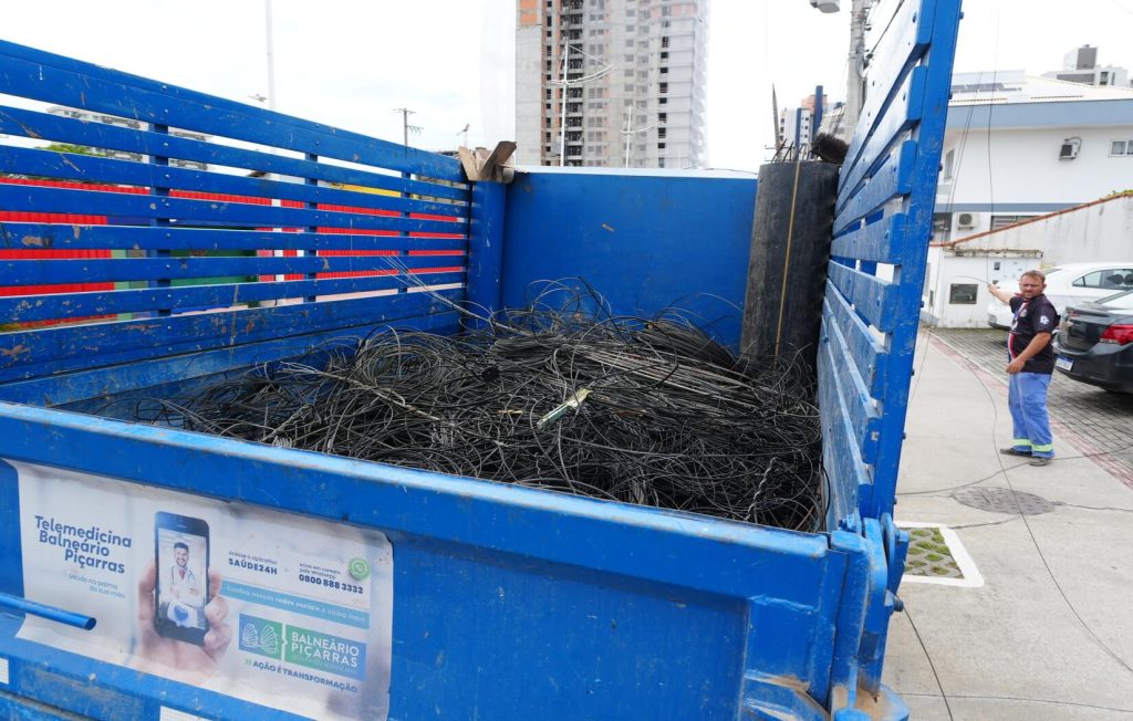 Mutirão de fios acumula mais de três toneladas de cabos irregulares retirados em Balneário Piçarras