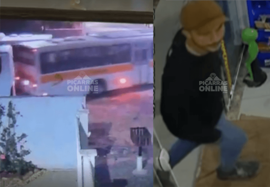Ônibus de transporte escolar é furtado durante a madrugada em Balneário Piçarras; câmeras de segurança flagraram criminoso em ação