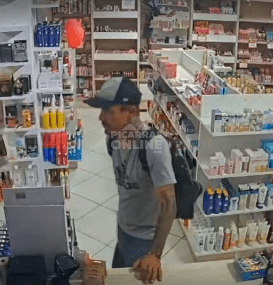 [VÍDEO] Homem furta produto em farmácia e proprietário faz alerta ao comércio em geral
