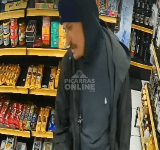 Um estabelecimento comercial localizado na Avenida Nereu Ramos, Centro, Balneário Piçarras, foi alvo de um ladrão conhecido na cidade. Uma câmera de segurança do comércio capturou o exato instante em que o homem retira uma garrafa de bebida da gôndola e a esconde. Em seguida, ele se dirige ao balcão e paga por outro produto, mas não paga pela garrafa em questão.